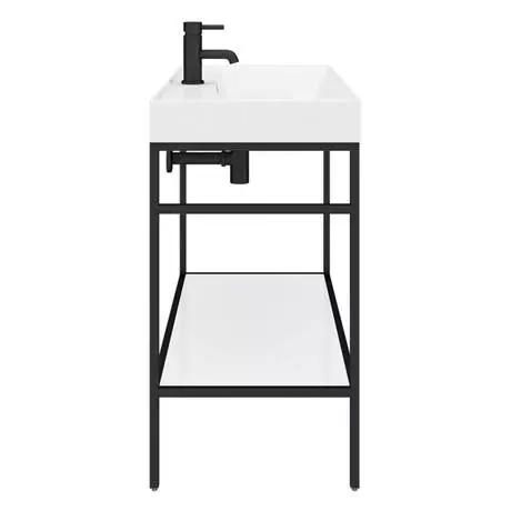 Arezzo 1000 Matt Black Framed Washstand with Gloss White Open Shelf and Basin