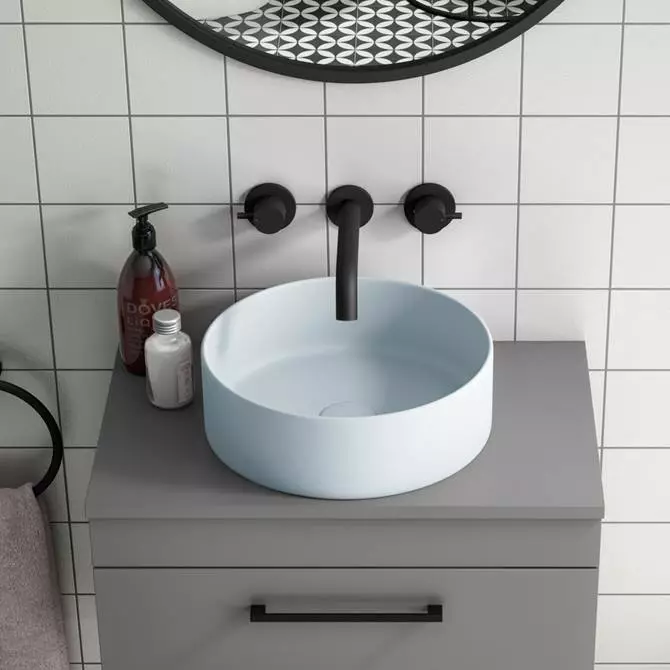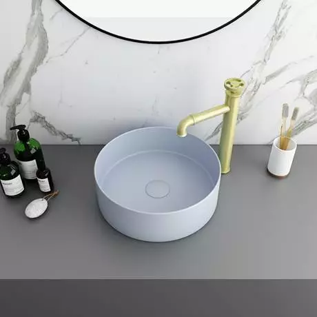 The eye catching luxury Arezzo matt blue coloured counter top basin has a stylish round shape, perfect for creating a boutique feel in your bathroom. Designed to be mounted onto a worktop console and is best complemented with a high rise basin mixer or wall mounted tap. Manufactured from high quality vitreous china with a matt pastel blue finish. Some small dimensional variation may occur due to manufacturing tolerances. Waste not included.