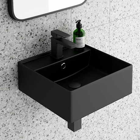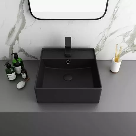 The eye catching luxury Arezzo matt black square basin with one tap hole has a stylish contemporary square shape, perfect for creating a boutique feel in your bathroom. Designed to be wall hung or mounted onto a worktop. Manufactured from high quality vitreous china with a matt black finish. Some small dimensional variation may occur due to manufacturing tolerances. Waste not included.