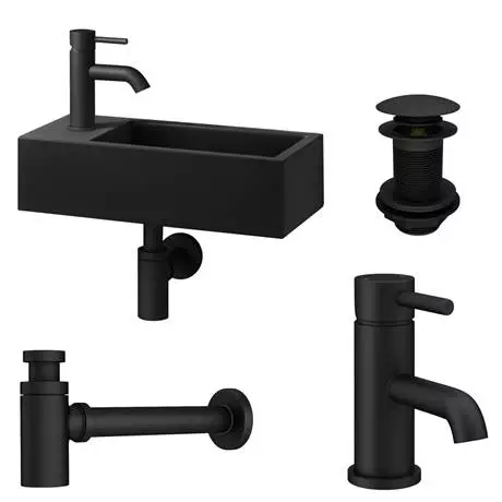 Arezzo 410 x 210 Square Wall Hung Basin with Tap Package (Matt Black)