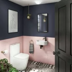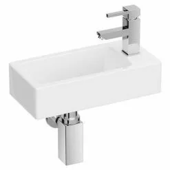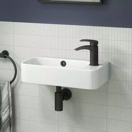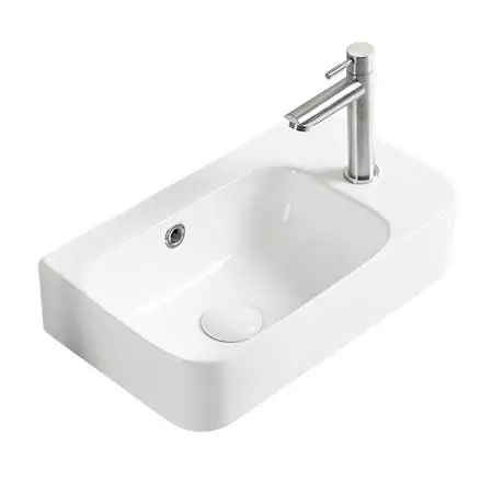 Ideal for cloakrooms and small bathrooms, the Arezzo curved offset wall hung cloakroom basin provides you with a handy wall mounted space-saving solution. Manufactured from high quality ceramic with a single tap hole. Some small dimensional variations may occur due to manufacturing tolerances. Waste not included.