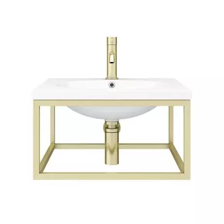 The smart and space-saving Arezzo 500mm wall mounted basin comes complete with a supporting brushed brass steel towel rail frame, perfect for creating a stunning, fashionable and chic bathroom interior.Â