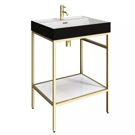 - Quality modern matt black outer and gloss white inner basin with overflow to complement the brushed brass washstand
