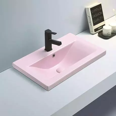 The eye catching luxury Arezzo matt pink coloured inset basin with one tap hole has a stylish contemporary rectangular shape, perfect for creating a boutique feel in your bathroom. Designed to be mounted onto a worktop console or vanity unit. Manufactured from high quality vitreous china with a matt pastel pink finish. Some small dimensional variation may occur due to manufacturing tolerances. Waste not included.