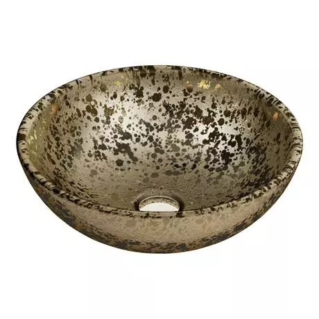 The modern curves of the Arezzo gold mottled design round counter top vessel basin will make a bold visual statement in any bathroom. Made from high quality vitreous china, the basin is perfect for counter tops and is best complemented with a high rise basin mixer or wall mounted tap. Some small dimensional variation may occur due to manufacturing tolerances. Waste not included.