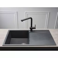 Reginox Amsterdam 15 1.5 Bowl Granite Kitchen Sink – Black Silvery