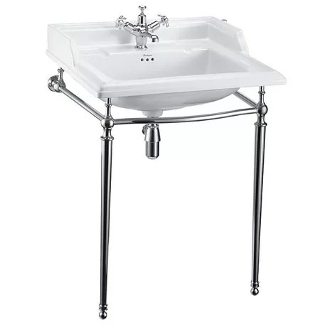 This Basin comes complete with a stunning Chrome Wash Stand. This Basin is available in a choice of 1, 2 or 3 Tap holes (1TH pictured), this option opens you up to be able to choose from the entire range of Burlington Taps.