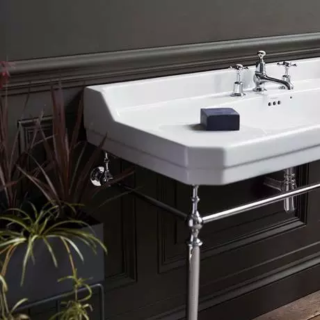 With structured corners and an angled design, the Burlington Edwardian 120cm basin and Chrome Wash Stand is the perfect centre piece for any bathroom. The elegant chrome plated wash stand comes with brass fittings and adds to the classic and timeless look. This basin is available in a choice of 1, 2 or 3 tap holes, this option opens you up to be able to choose from the entire range of Burlington’s stunning and elegant taps.