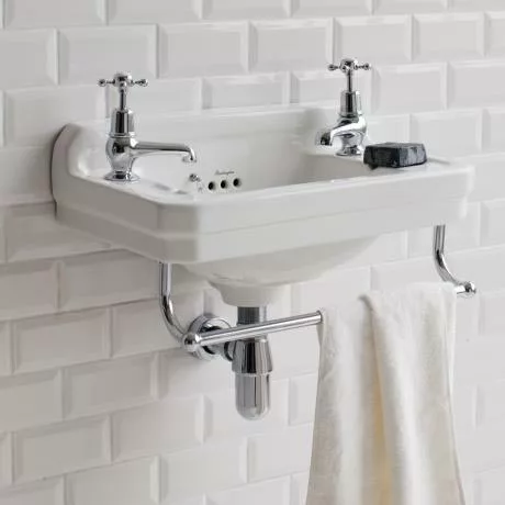 This petite Burlington Edwardian basin will give a sense of grandeur and luxury without cramping a compact bathroom or cloakroom. It captures a traditional style with its broad, ridged rim, subtle backsplash and three hole overflow. The wall mount design frees up room for storage on the floor, and, at just 510mm wide, it easily slots into small spaces. It’s supplied with mounting brackets for quick and sturdy installation.