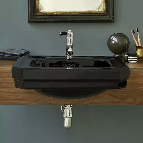 The Burlington Jet 58cm Semi-Recessed Basin is both classically timeless and versatile. The lustrous gloss Black basin is designed to be mounted into a worktop or piece of vanity furniture. Jet ceramic bathroom products are made in the UK and is to the same high fired quality as Burlington’s white ceramic with a 25 year guarantee on ceramics.Â