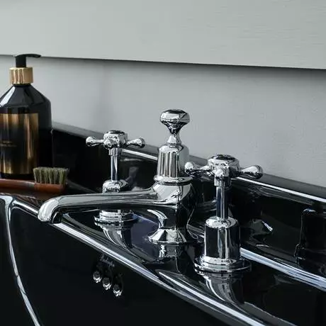 The Burlington Jet Edwardian 3TH 120cm Medium Basin and Chrome Wash Stand is both classically timeless and versatile. The lustrous gloss Black basin comes paired with an elegant polished chrome wash stand creating a truly striking look in your bathroom.