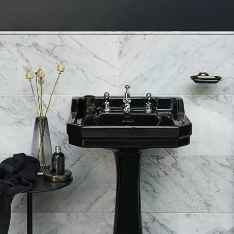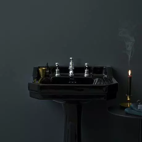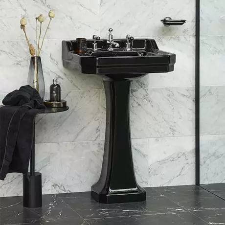 The Burlington Jet Edwardian 56cm Basin with Standard Pedestal is both classically timeless and versatile. The lustrous gloss black basin comes paired with a matching pedestal to complete the look. Available in 1, 2 or 3 tap hole options.