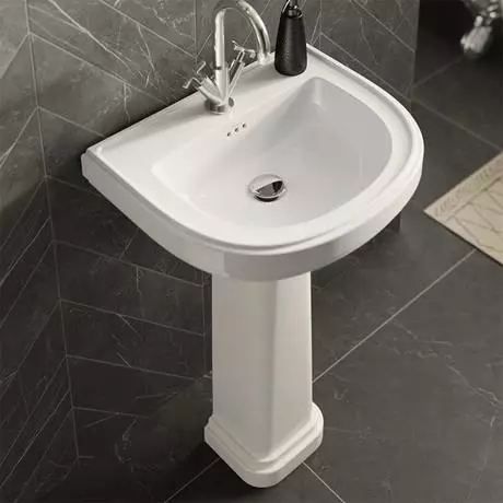 The 580mm Riviera D-Shape Basin with Riviera Full Pedestal is the perfect addition to fulfill all your art deco bathroom ideas. The ergonomic design and sweeping corners allow this basin to fit perfectly into smaller bathroom spaces. You can also choose from 0, 1, 2, or 3 tap holes so your beautiful new basin can completely suit your traditional bathroom needs.