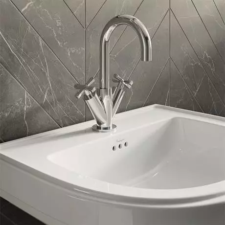The 650mm Riviera D-Shape Basin with Riviera Full Pedestal is the perfect addition to fulfill all your art deco bathroom ideas. The ergonomic design and sweeping corners allow this basin to fit perfectly into smaller bathroom spaces. You can also choose from 0, 1, 2, or 3 tap holes so your beautiful new basin can completely suit your traditional bathroom needs.