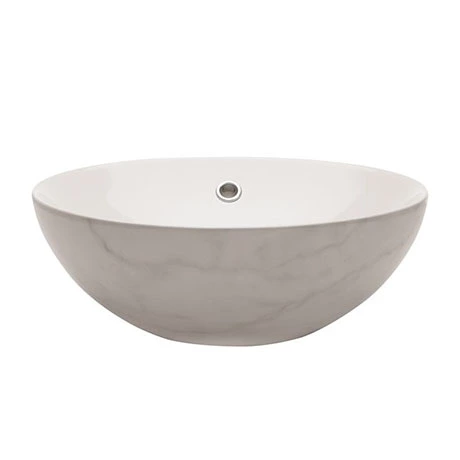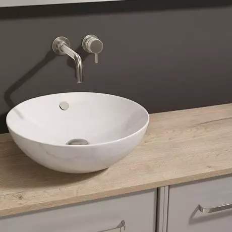 Curvaceous and beautiful, the Crosswater Castellon countertop basin features a gloss white internal glaze with a carrara marble decor exterior. Thoughtfully designed, Crosswater full countertop basins are finished all the way around to allow you to beautifully accessorise with a mirror that can be hung directly behind.