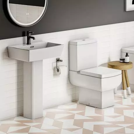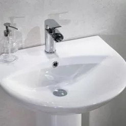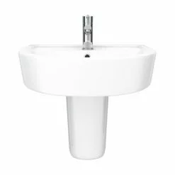 The super stylish Cubo square 1 tap hole basin with full pedestal, it’s contemporary elegant lines and compact size make it ideal for smaller bathrooms and en-suites; made from high grade ceramic with a smooth cool white finish. The 520mm wide basin only projects from the wall by 415mm. Comes supplied with a full pedestal which helps conceal unsightly pipework.