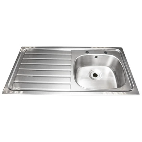 This single bowl kitchen sink is a high quality inset kitchen sink suitable for domestic or commercial use. Made from high grade 0.9mm thick stainless steel with a satin polish finish. The sink comes pre-drilled with two tap holes and overflow while all edges are turned down and incorporates a rimmed edge and fixing rails. Available with a left or right hand drainer.