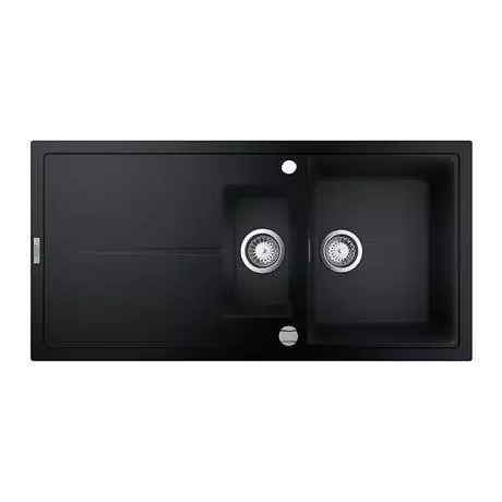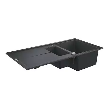 The K400 kitchen sink with drainer is both beautiful and highly functional. Made from 80% quartz / 20% acrylic resin and hardener composite material that will resist stains, scratches, heat and dents. GROHE Whisper technology gives the composite construction excellent noise-reduction qualities under running water. The GROHE QuickFix system comes with 2 holes pre-punched making installation quick and straightforward.