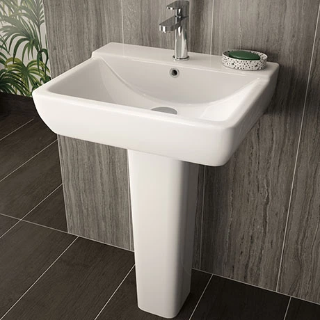 The soft square profile of the Arlo basin with full pedestal, is the perfect match for the different pan design options. Made from high quality vitreous china, this slimline range will look stylish in any bathroom or en-suite. Features a wide tap deck which offers additional space for your toiletries.