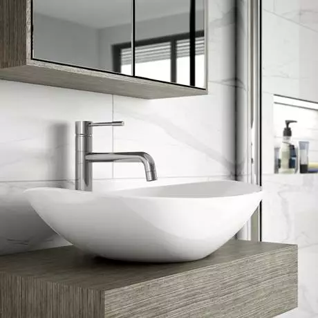 Give your bathroom a designer feel with the curved Hudson Reed Countertop Vessel Basin. This 615mm wide oval shaped sink is made with high quality vitreous china, so it’s both durable and scratch resistant. Its glossy white finish makes it easy to wipe clean, too. This countertop basin has no tap hole, so pairs naturally with a wall mounted tap such as Hudson Reed’s Revolution Industrial Basin Mixer. Alternatively, install it with a high rise basin mixer from the Swift or Summit ranges.