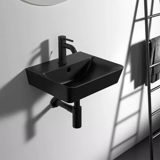The Connect Air Cube Silk Black 400mm basin will make a design statement in the bathroom with it’s bold and square geometric lines. This stylish silk black basin is manufactured using high quality vitreous china and features a single tap hole and built in overflow. Can be wall hung or mounted on top of Connect Air basin units.