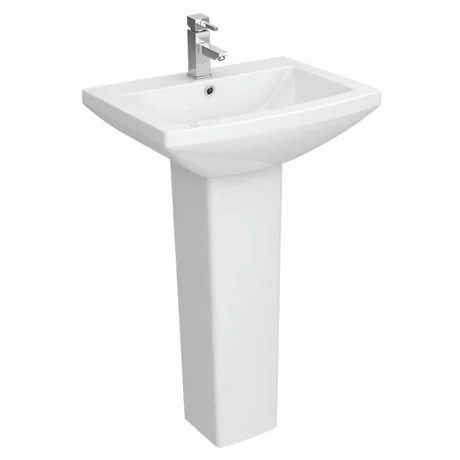 The super stylish Monza square modern short projection 1 tap hole basin and pedestal, it’s contemporary elegant lines and compact size make it ideal for smaller bathrooms and en-suites; made from high grade ceramic with a smooth cool white finish. The 550mm wide basin only projects from the wall by 415mm. Comes supplied with a full pedestal.