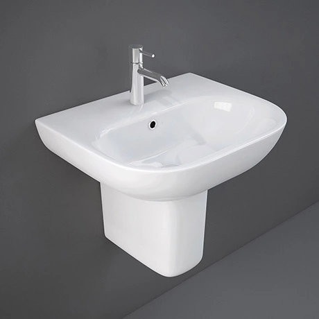 The Tonique 55cm 1 tap hole basin with half pedestal from RAK ceramics. Transform your bathroom with one of our contemporary basins from RAK ceramics. The basin has an overflow and tap platform for a mono basin tap, the clean curvacious design of the Tonique basin and half pedestal will compliment any cloakroom or bathroom.