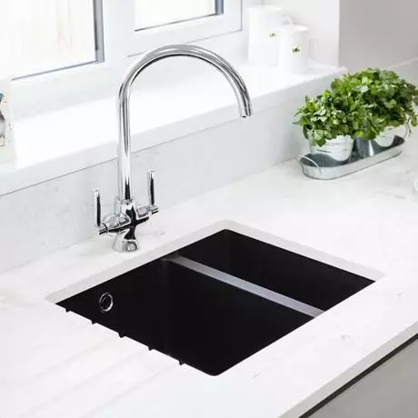 Rangemaster Paragon Undermount Ash Black 1.5 Bowl Igneous Granite Kitchen Sink