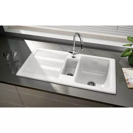 The Portland 1.5 Bowl Ceramic Sink is ultra stylish and fits in perfectly in any contemporary or classic kitchen. Made from fire-clay ceramic providing superior strength while it’s smooth high gloss finish looks stunning.