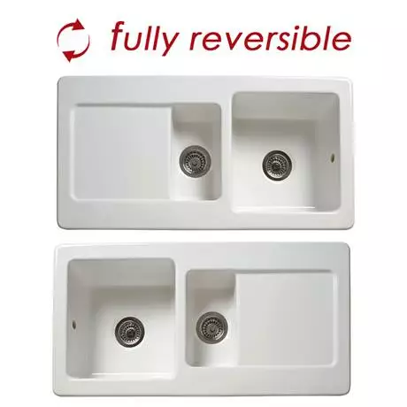 1 x Reginox Contemporary White Ceramic 1.5 Bowl Kitchen Sink – RL501CW