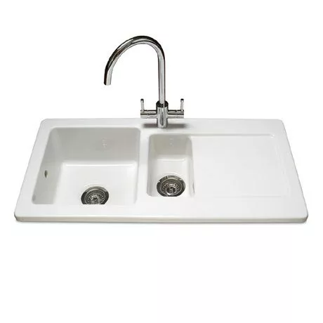 This Reginox Contemporary White Ceramic 1.5 Bowl Kitchen Sink is from the Regi-Ceramic range, made from the highest grade fine fireclay it is able to withstand the daily uses of the kitchen. This inset sink requires a minimum cabinet size of 800mm and has a fully reversible drainer. A polished chrome basket strainer waste is also included. Reginox ceramics offer a stylish contemporary or traditional alternative to other materials. With many different styles available to choose from Reginox ceramics offer something to suit all kitchens. This great looking sink comes with a 10 year manufacturers guarantee.