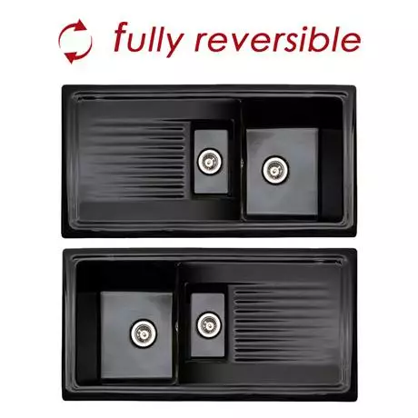 The traditional black ceramic sink features a 1.5 bowl, although classic in design, Reginox use the latest design and manufacturing methods to achieve amazing results. Made from high grade fine fire clay it makes it robust and durable making it able to withstand the daily uses of the kitchen. This beautiful sink comes with a 10 year manufacturerâs warranty.