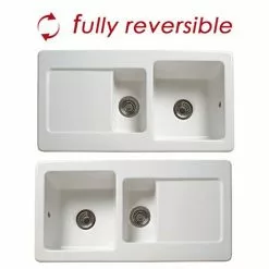 - 1.5 bowl ceramic kitchen sink with reversible drainer