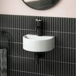 Arezzo Matt Black Round Wall Hung Cloakroom Basin 1TH (303 x 255mm)