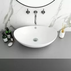 Arezzo Stone Resin Floating Basin Shelf inc. Oval Basin – 600mm Wide