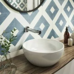Arezzo 405 x 405mm Square Counter Top Basin – Matt White Marble Effect