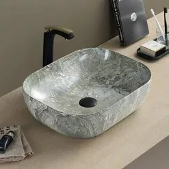 Arezzo 505 x 405mm Curved Rectangular Counter Top Basin – Gloss Grey Marble Effect