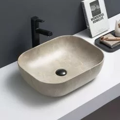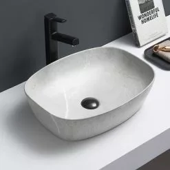 Arezzo 505 x 385mm Curved Rectangular Counter Top Basin – Light Grey Marble Effect