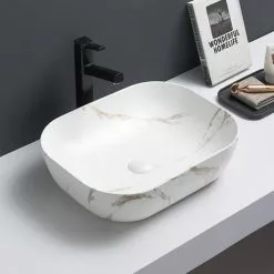 Arezzo 505 x 405mm Curved Rectangular Counter Top Basin – Matt White Marble Effect
