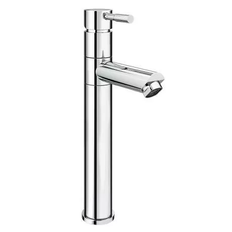 The stylish 400mm diameter round counter top basin bowl with a matching Swift round high rise mono basin mixer, designed to be mounted onto a worktop console or piece of vanity furniture. The basin comes with no tap holes.