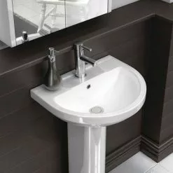 The Vibe 550mm ceramic basin and pedestal is styled to suit most modern bathrooms with its contemporary squared lines and smooth curves. Its short projection makes it an ideal solution for smaller sized bathrooms. Manufactured from high grade ceramic and finished in gloss white. The basin comes paired with a full pedestal and features a single tap hole for use with a basin mixer and an integrated overflow.Â