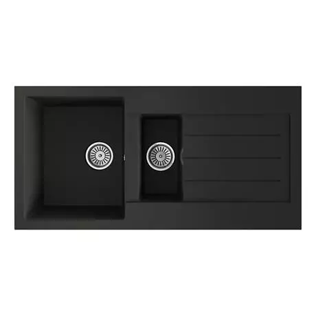 Venice 1.5 Bowl Matt Black Composite Kitchen Sink + Chrome Wastes