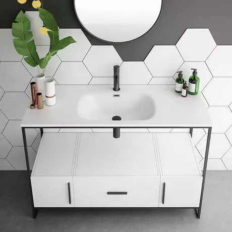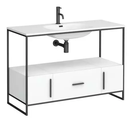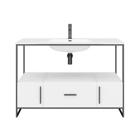 - 1-Drawer, 2-Cupboards washstand with basin and matt black metal frame