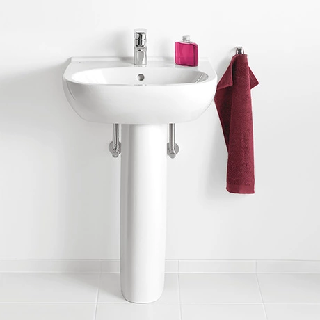 Versatile and inexpensive, the O.novo range from Villeroy and Boch offers the full spectrum of modern bathroom designs. This O.novo one tap hole basin and full-pedestal is made from high grade gloss white ceramic and features a single tap hole and built in overflow. The sanitary ceramic is especially long-lasting and easy to clean and durable.