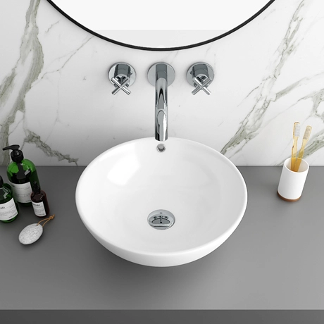 The elegant round counter top basin with stylish round design. Designed to be mounted onto a worktop console or piece of vanity furniture. The basin comes with no tap holes and is to be used alongside a counter or wall mounted outlet. Made from quality smooth white gloss ceramic.Β Some small dimensional variation may occur due to manufacturing tolerances.